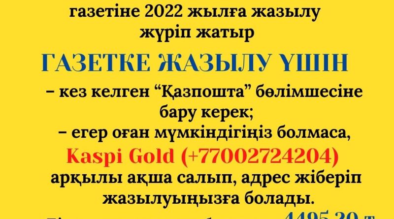Толығырақ оқуҚұрметті оқырман! Аудан жаңалықтарының жаршысы облыс, республика аумағындағы айтарлықтай оқиғалардан ақпараттарды үзбей жариялап отыратын «Еңбекшіқазақ» газетіне 2022 жылға жазылу жүріп