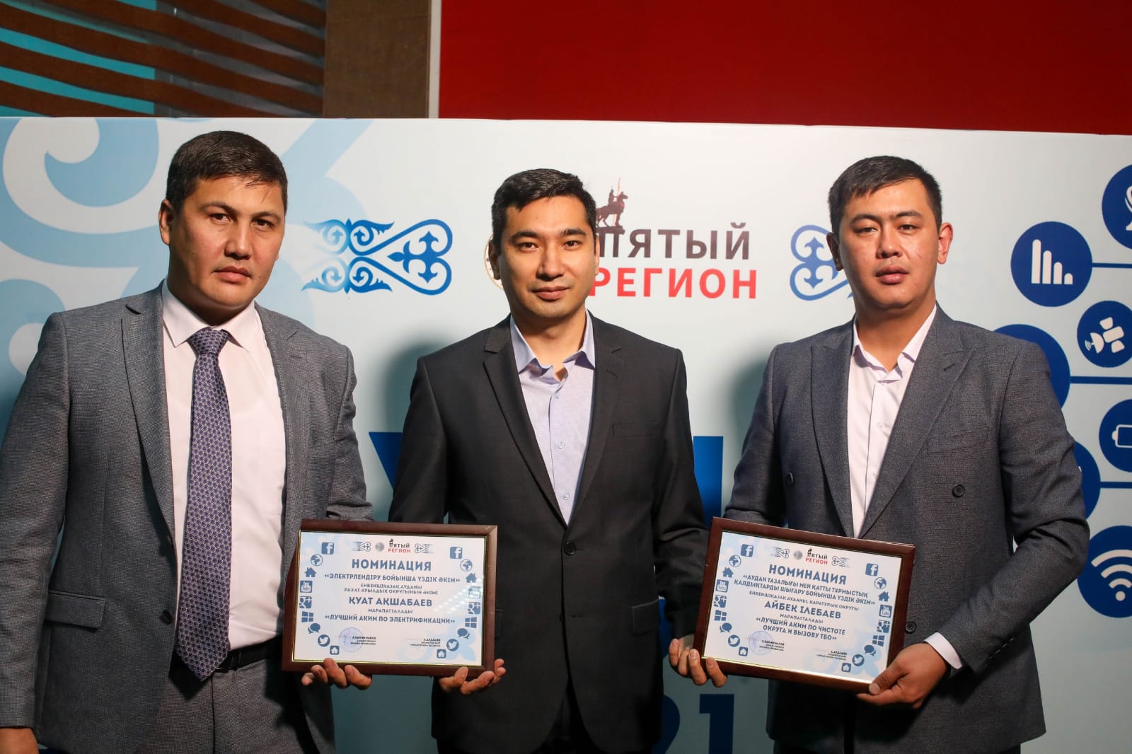 Ал, «Ауылдық елді мекенді жарықтандыру бойынша үздік әкім» және «Аудан тазалығы мен қатты тұрмыстық қалдықтарды шығару бойынша үздік әкім» номинациясының иесі Еңбекшіқазақ ауданының, Қаратүрік ауылдық округінің әкімі Айбек Ілебай атанды.